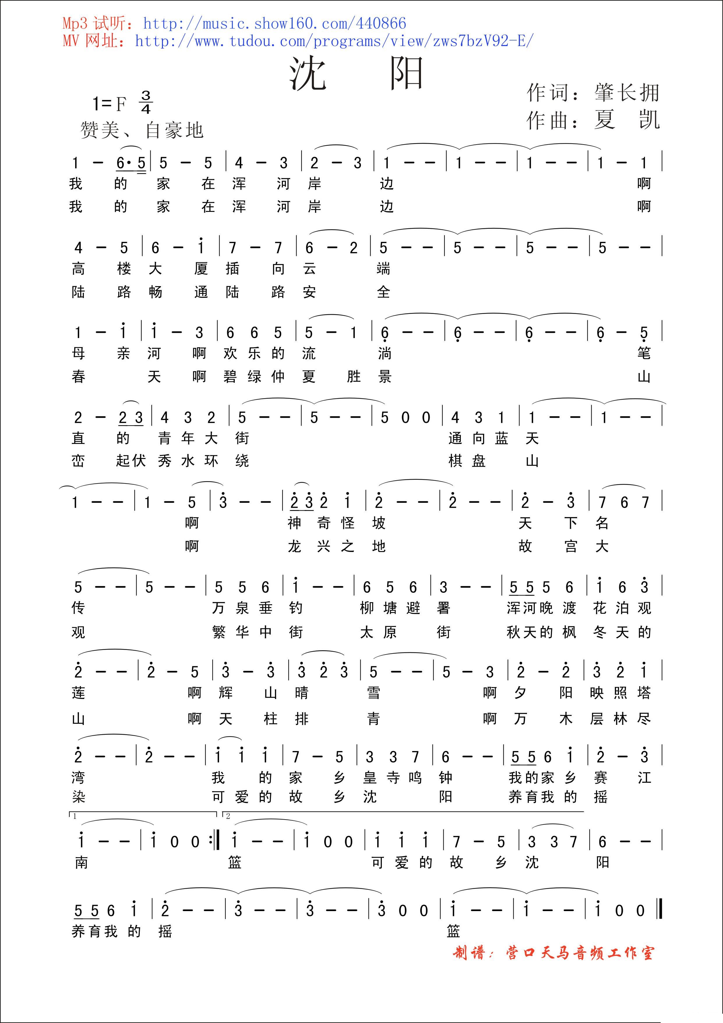 > 沈阳 辽宁城市歌曲之一