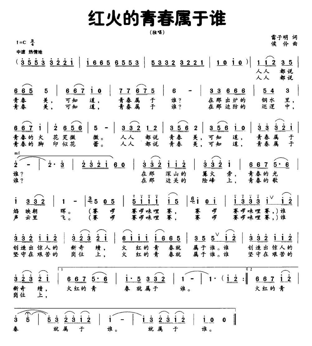红红的宁夏红 独唱或齐唱