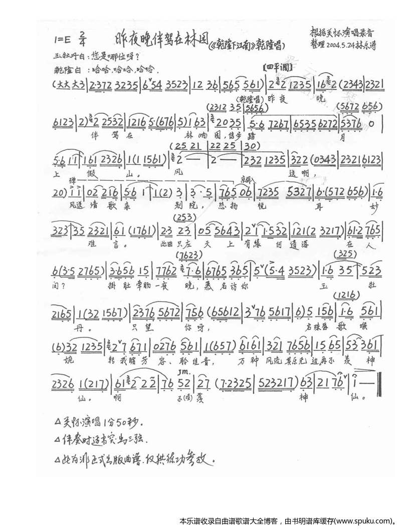 昨夜晚伴驾在林园 京剧 戏谱