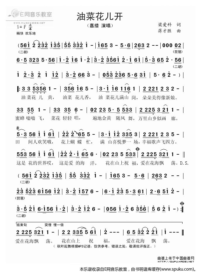 - [歌谱] 等你等到油菜花开 又名 等你等到油菜花儿开