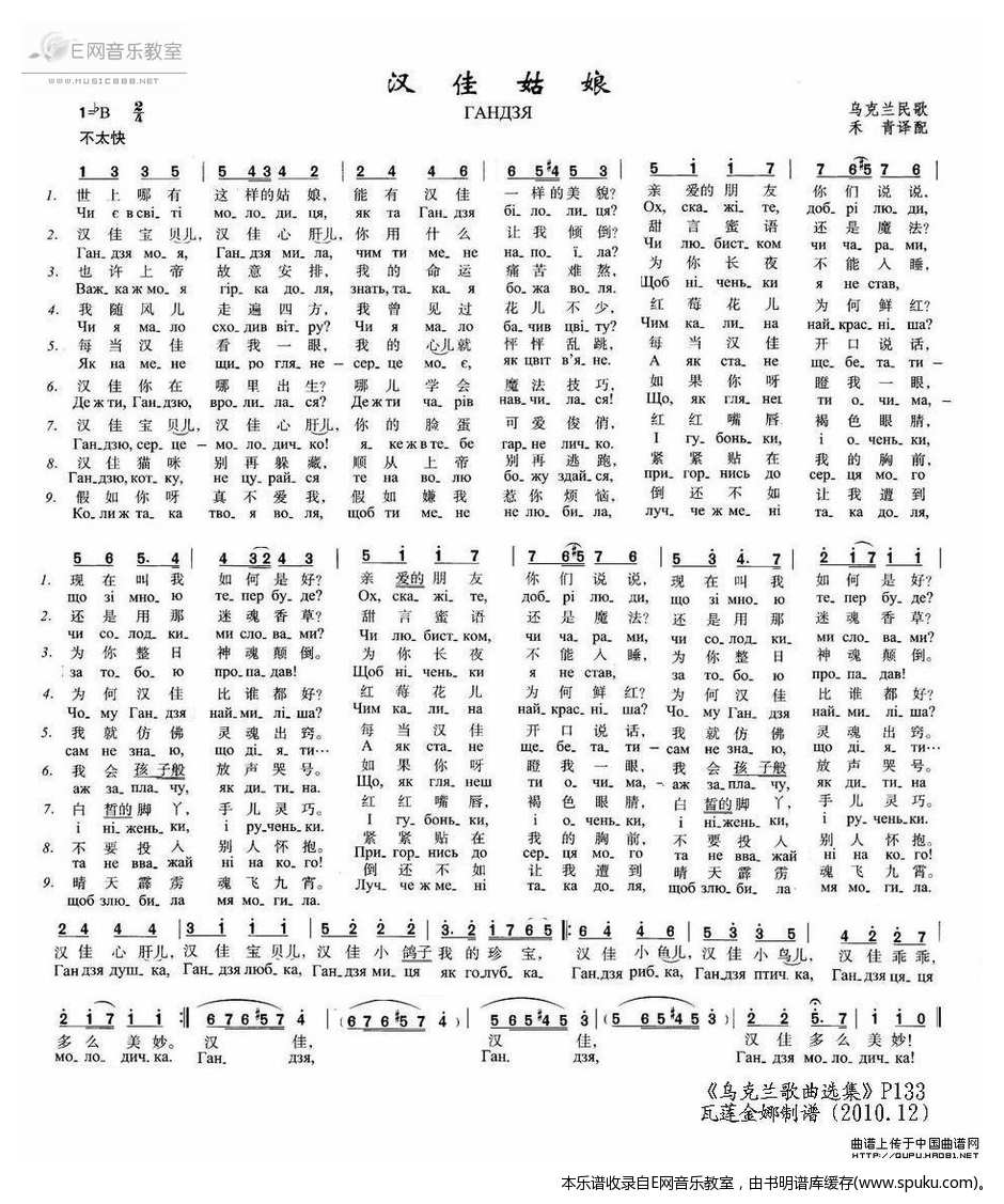 汉佳姑娘 乌克兰民歌