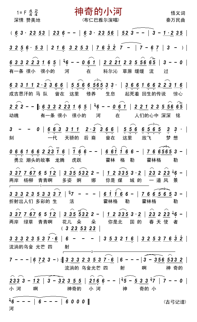 - [歌谱] 神奇的小河