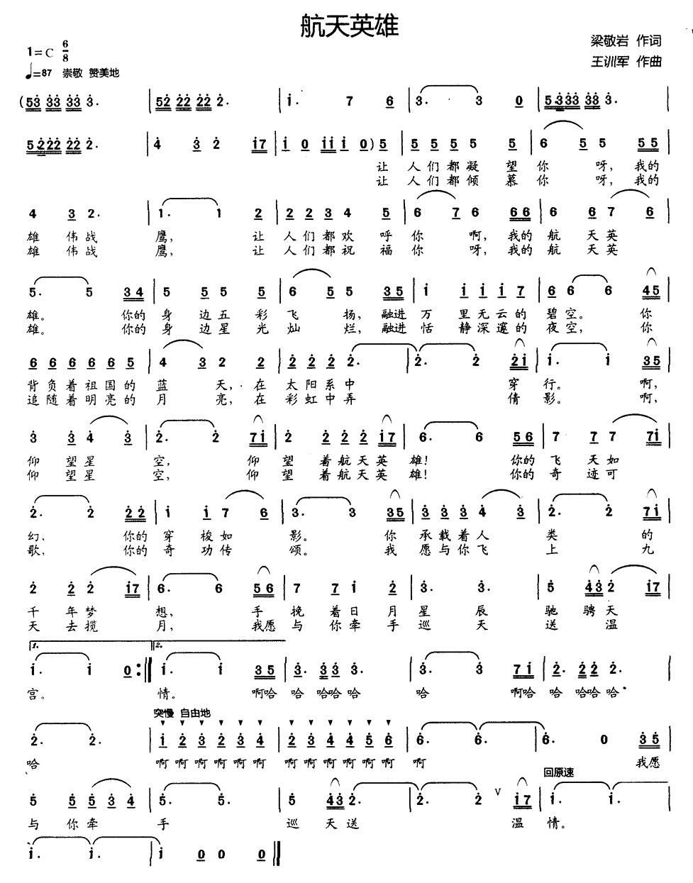 - [歌谱] 航天叔叔太空归 少儿歌曲