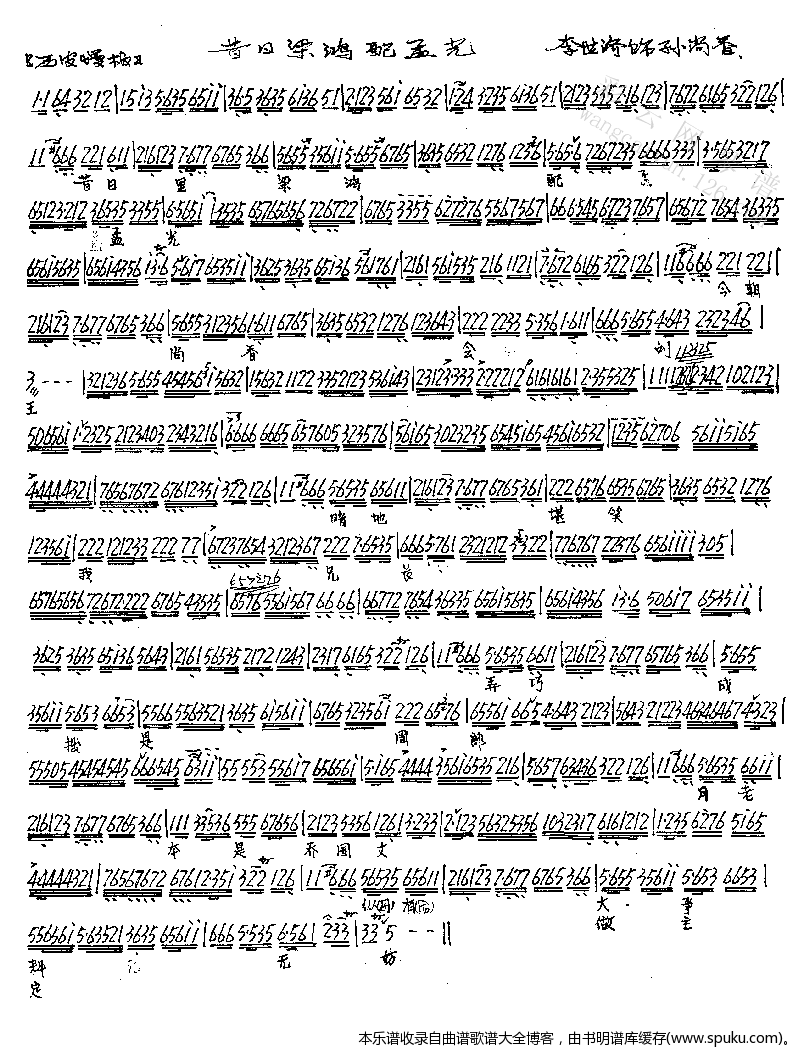 昔日梁鸿配孟光 龙凤呈祥 选段 京胡伴奏谱 京剧唱谱