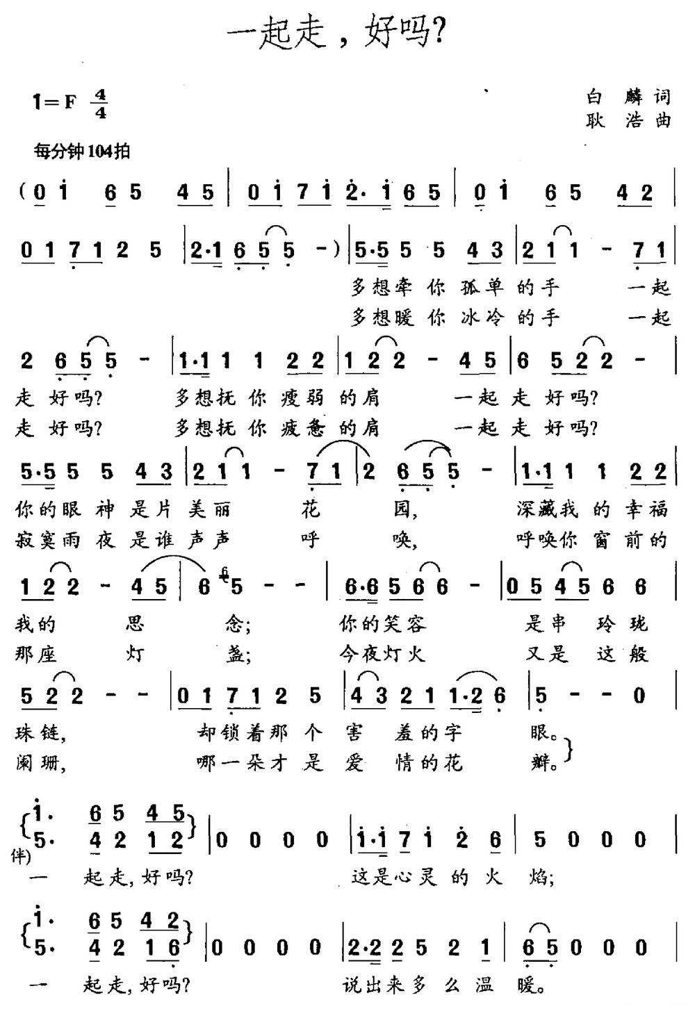 > 一起走 好吗