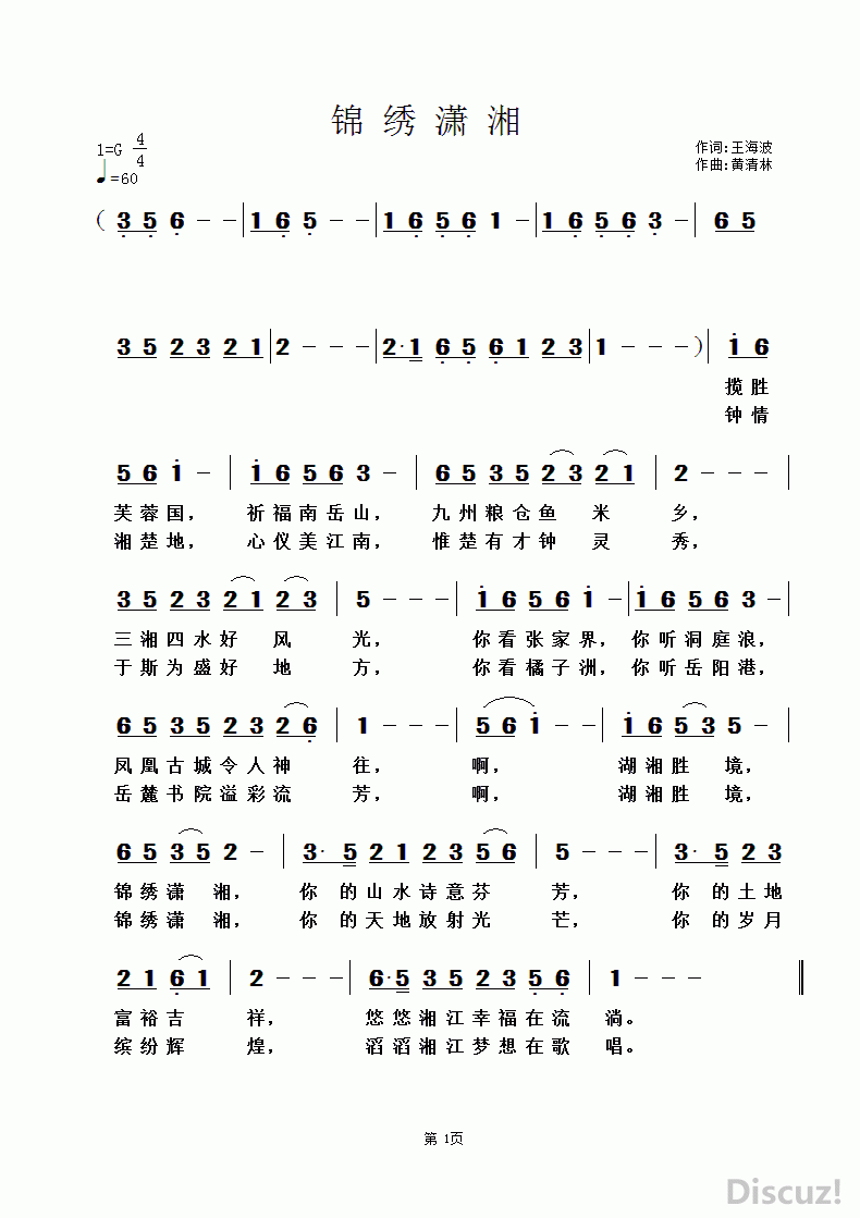 - [歌谱] 锦绣潇湘