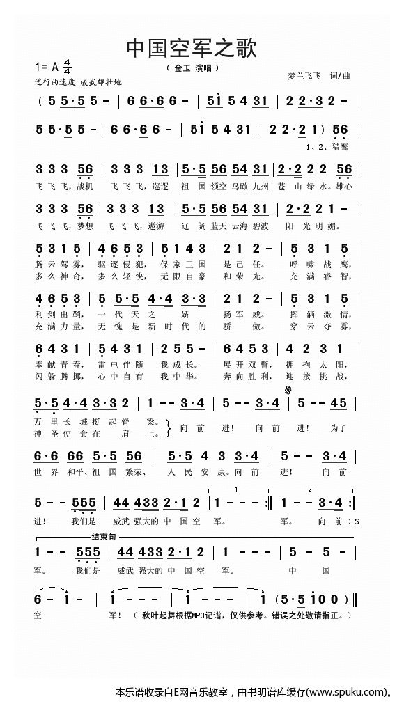 - [歌谱] 中国空军之歌 金玉