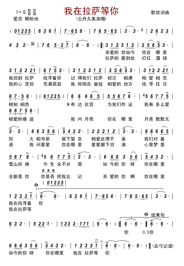 - [歌谱] 我在拉萨等着你