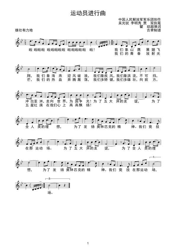 运动员进行曲 无伴奏混声合唱 马革顺编合唱