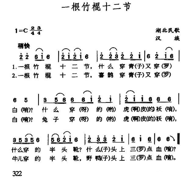> 一根竹棍十二节 湖北民歌