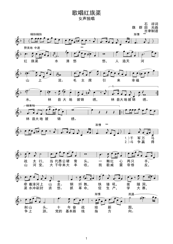 > 歌唱红旗渠