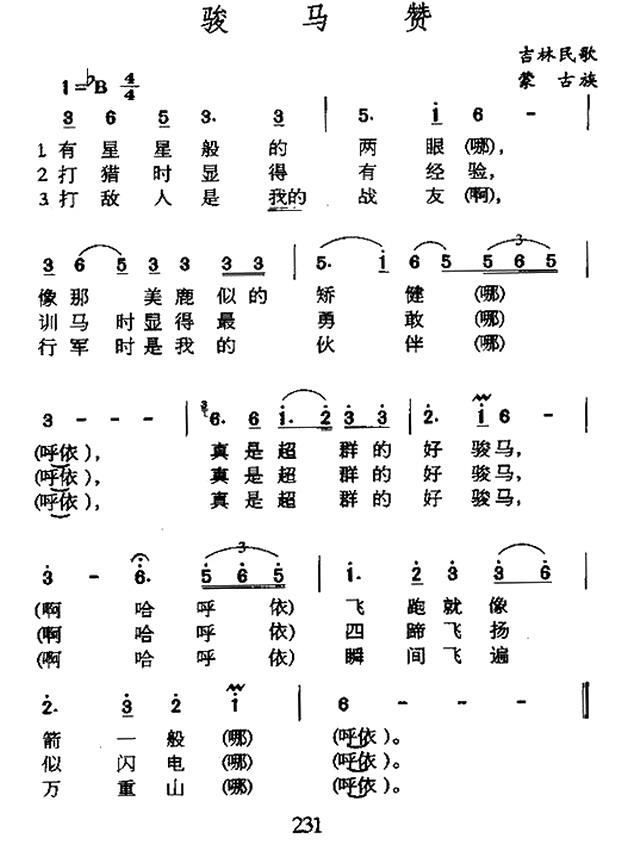 > 骏马赞 吉林蒙古族民歌