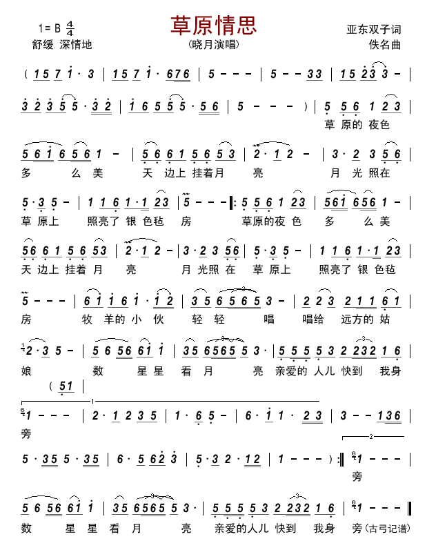 - [歌谱] 草原情思