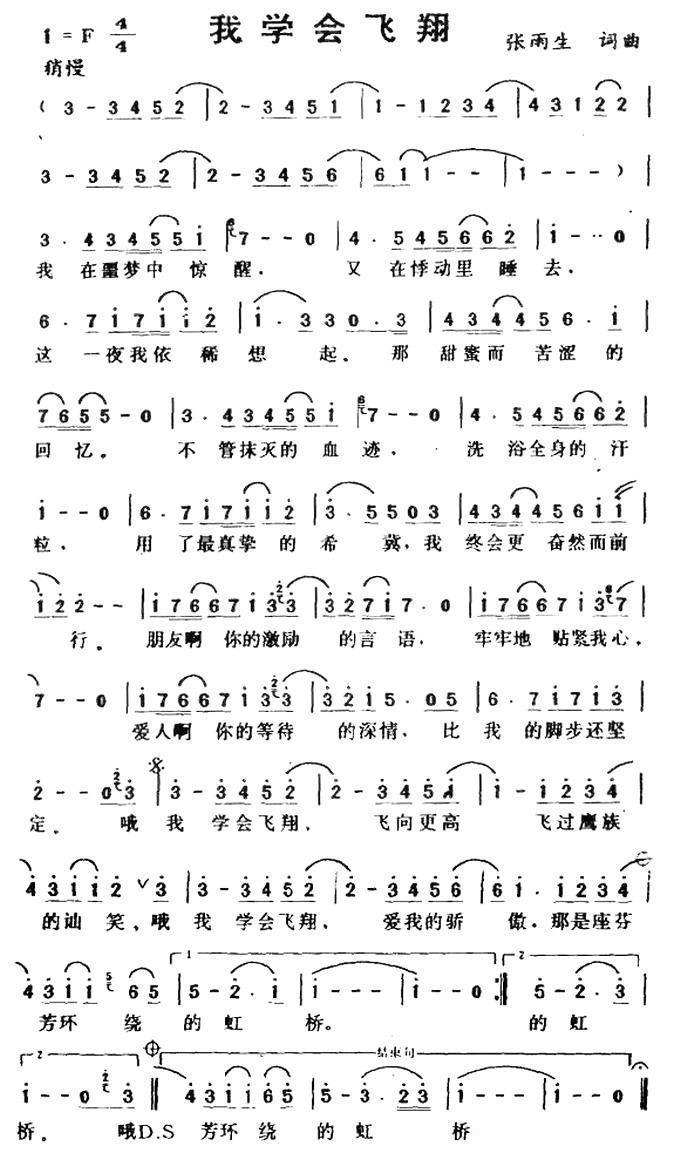 - [歌谱] 我学会飞翔