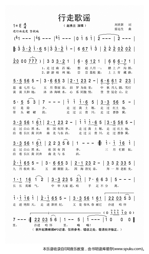 - [歌谱] 行走歌谣 赵秀兰