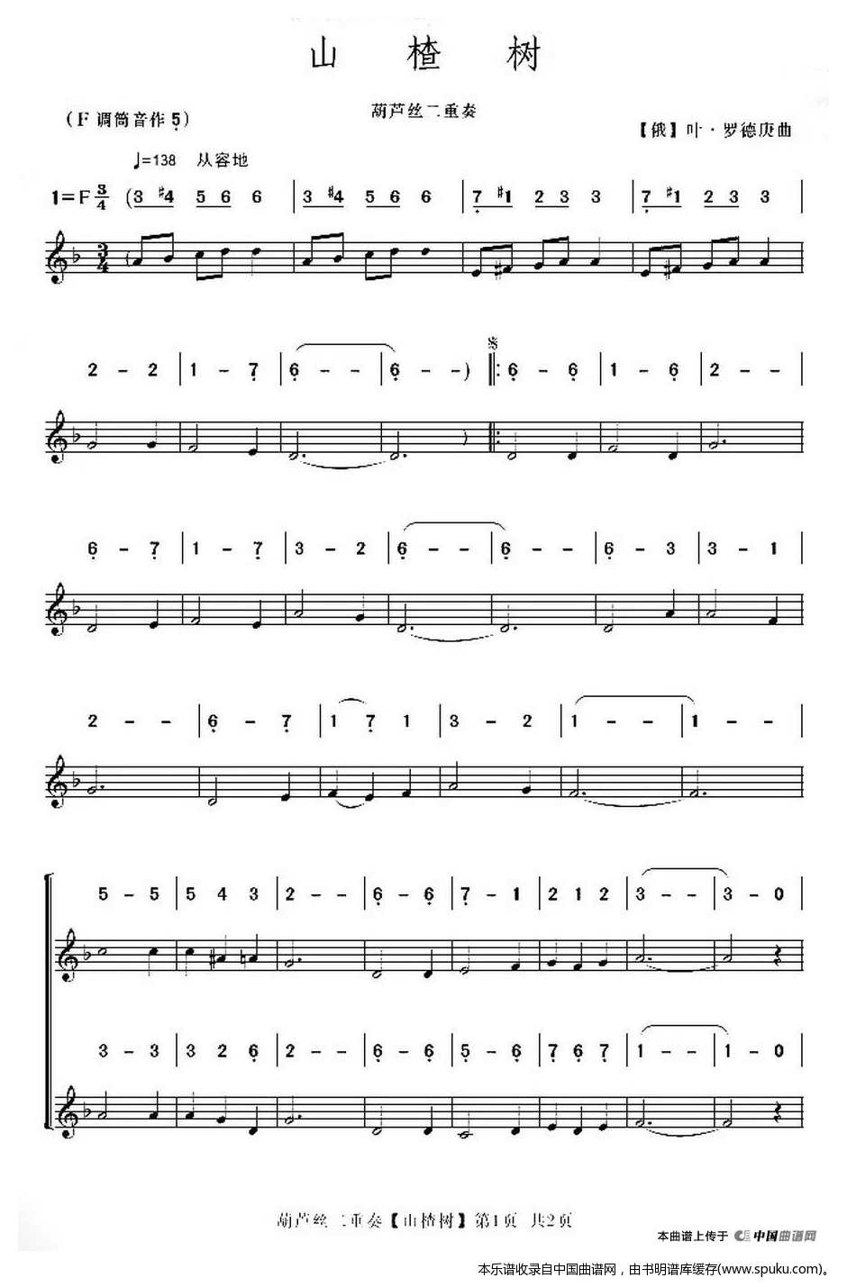 山楂树 葫芦丝二重奏