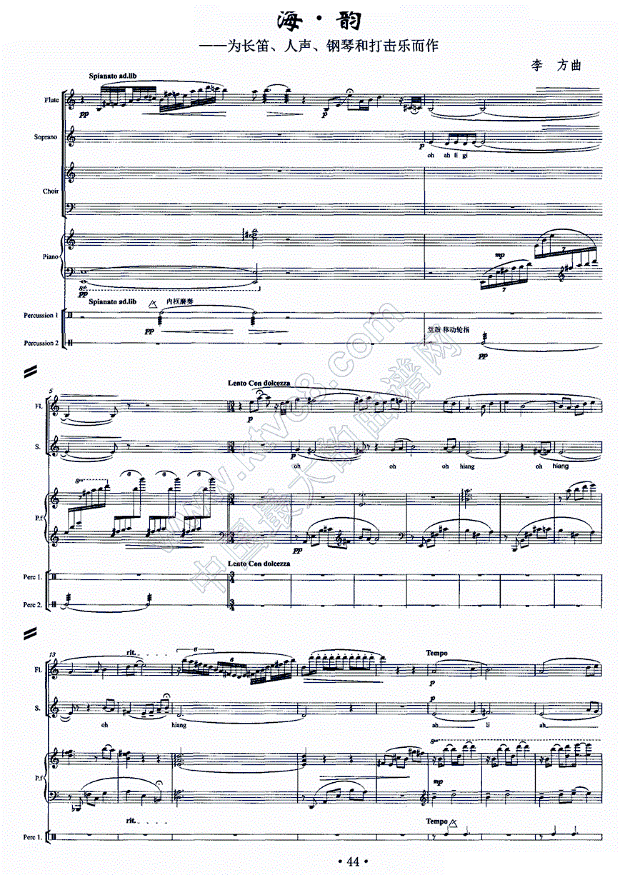 > 海 韵 为长笛 人声 钢琴和打击乐而作