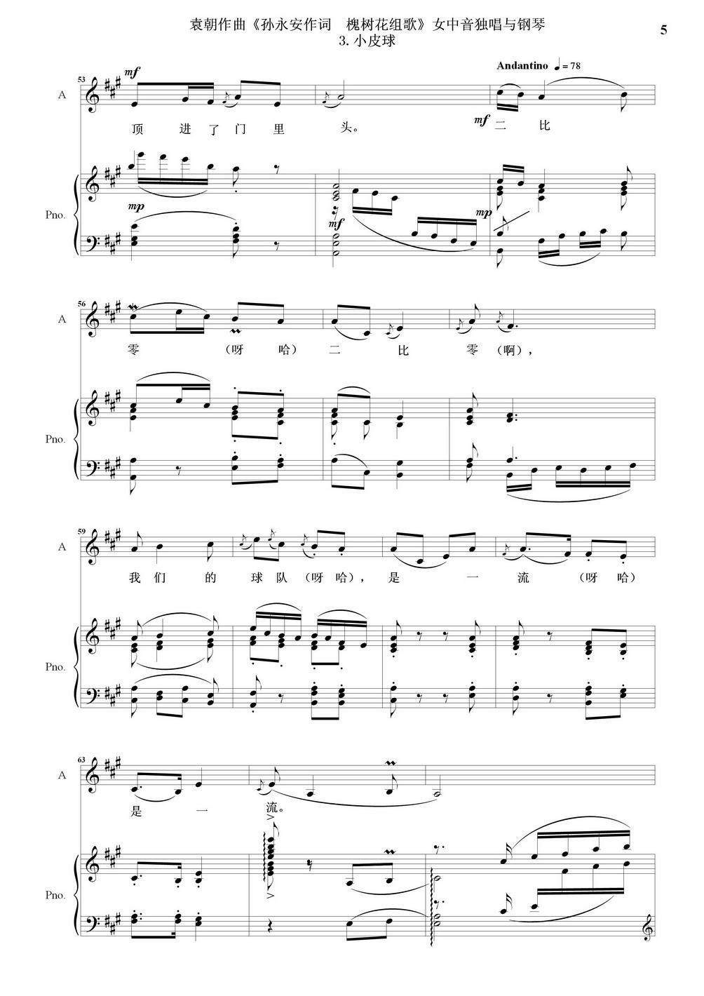 槐树花组歌 3 小皮球 女中音独唱与钢琴