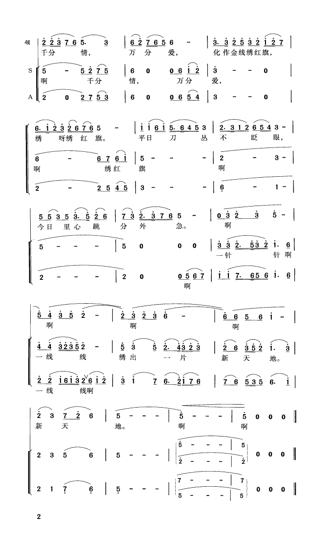 - [歌谱] 绣红旗 合唱 选自歌剧 江姐