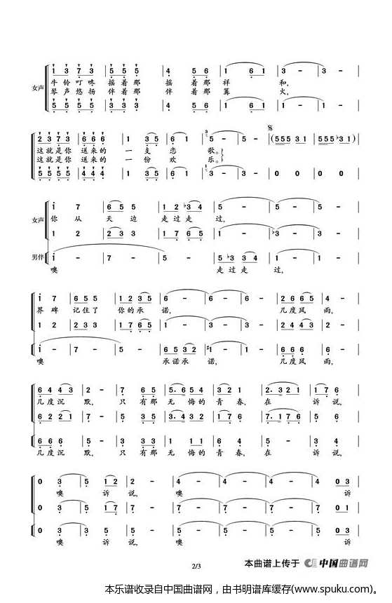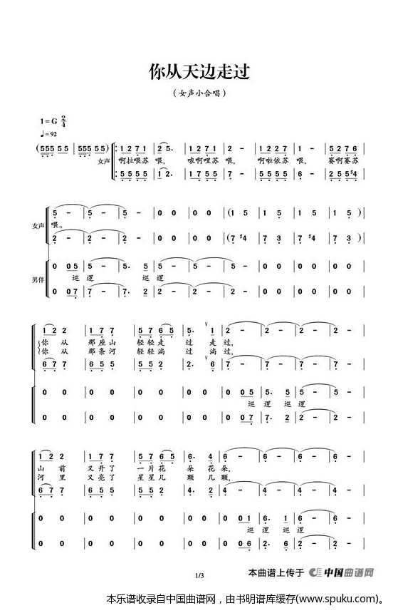 你从天边走过 合唱谱