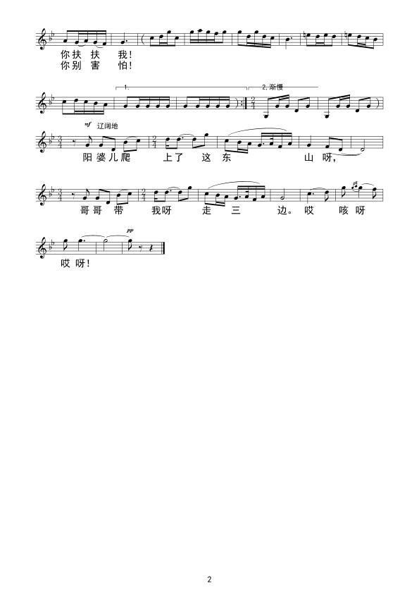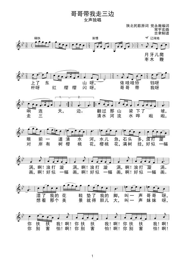 - [歌谱] 叫声哥哥你带我走 陕北民歌 彩谱