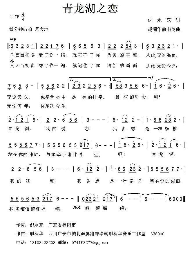 - [歌谱] 镜湖之恋