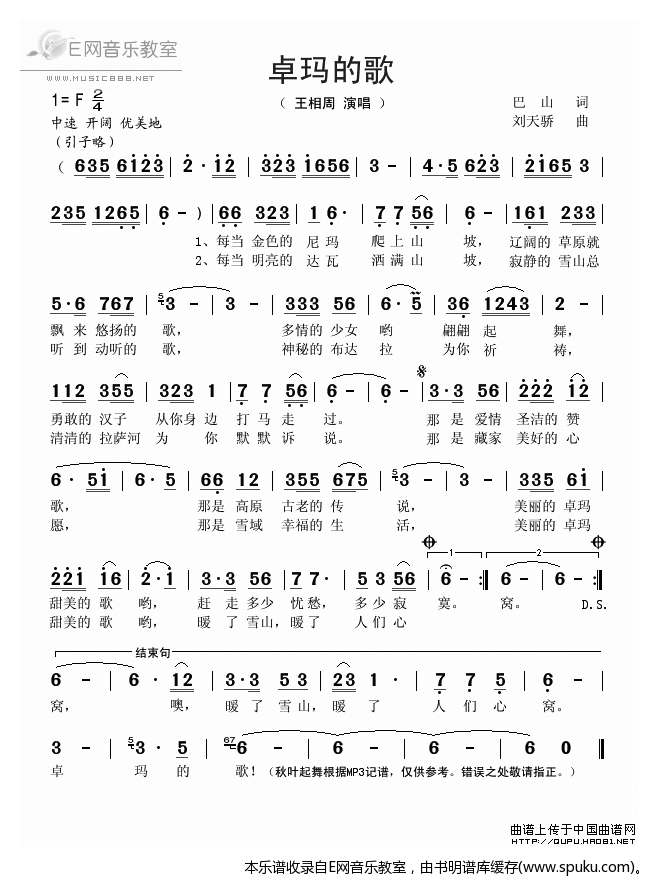- [歌谱] 卓玛的歌