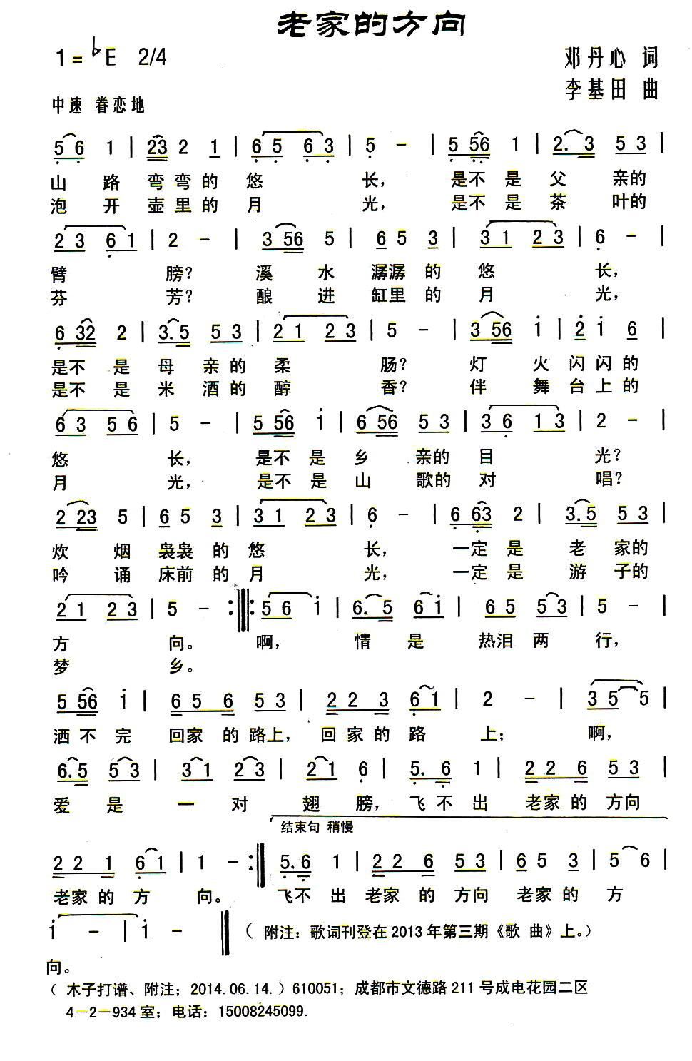 - [歌谱] 老家的方向