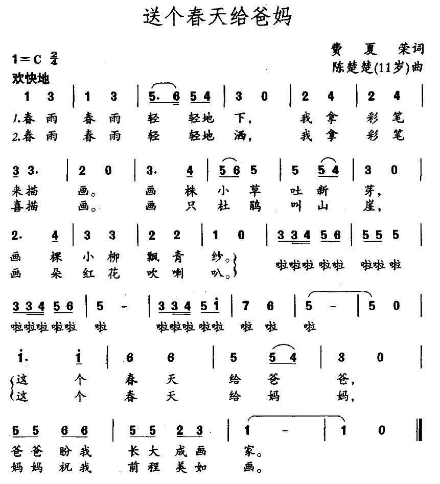- [歌谱] 送你一个春天