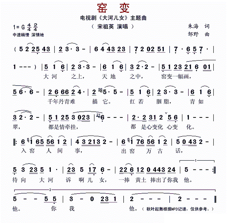 > 窑变 电视剧 大河儿女 主题曲