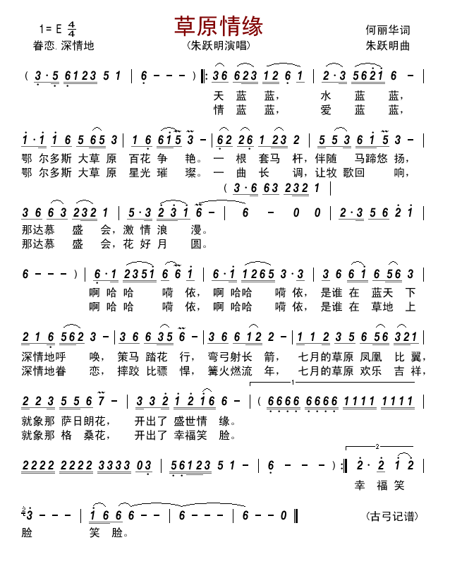 - [歌谱] 草原情缘