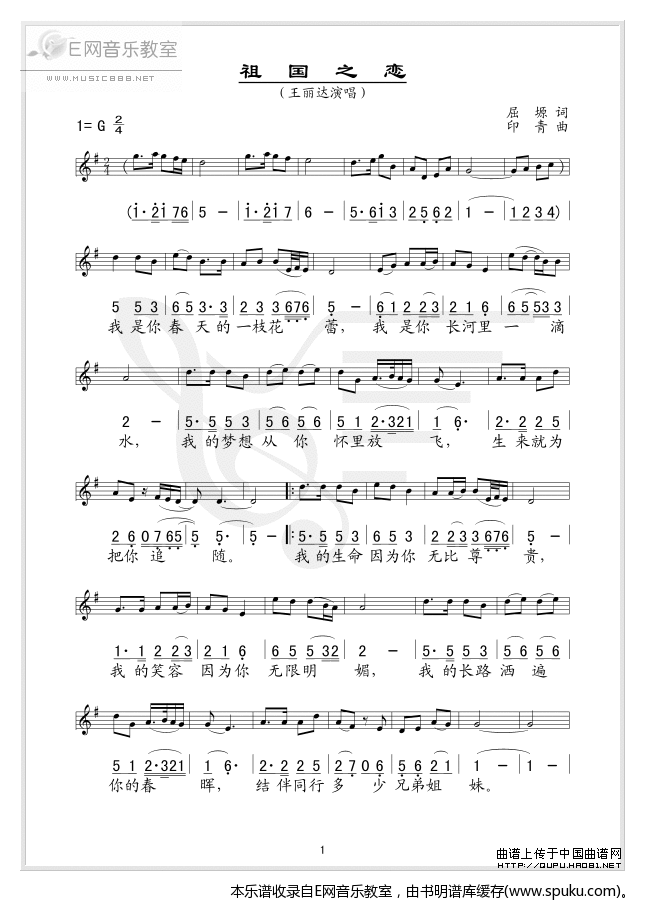 - [歌谱] 祖国之恋