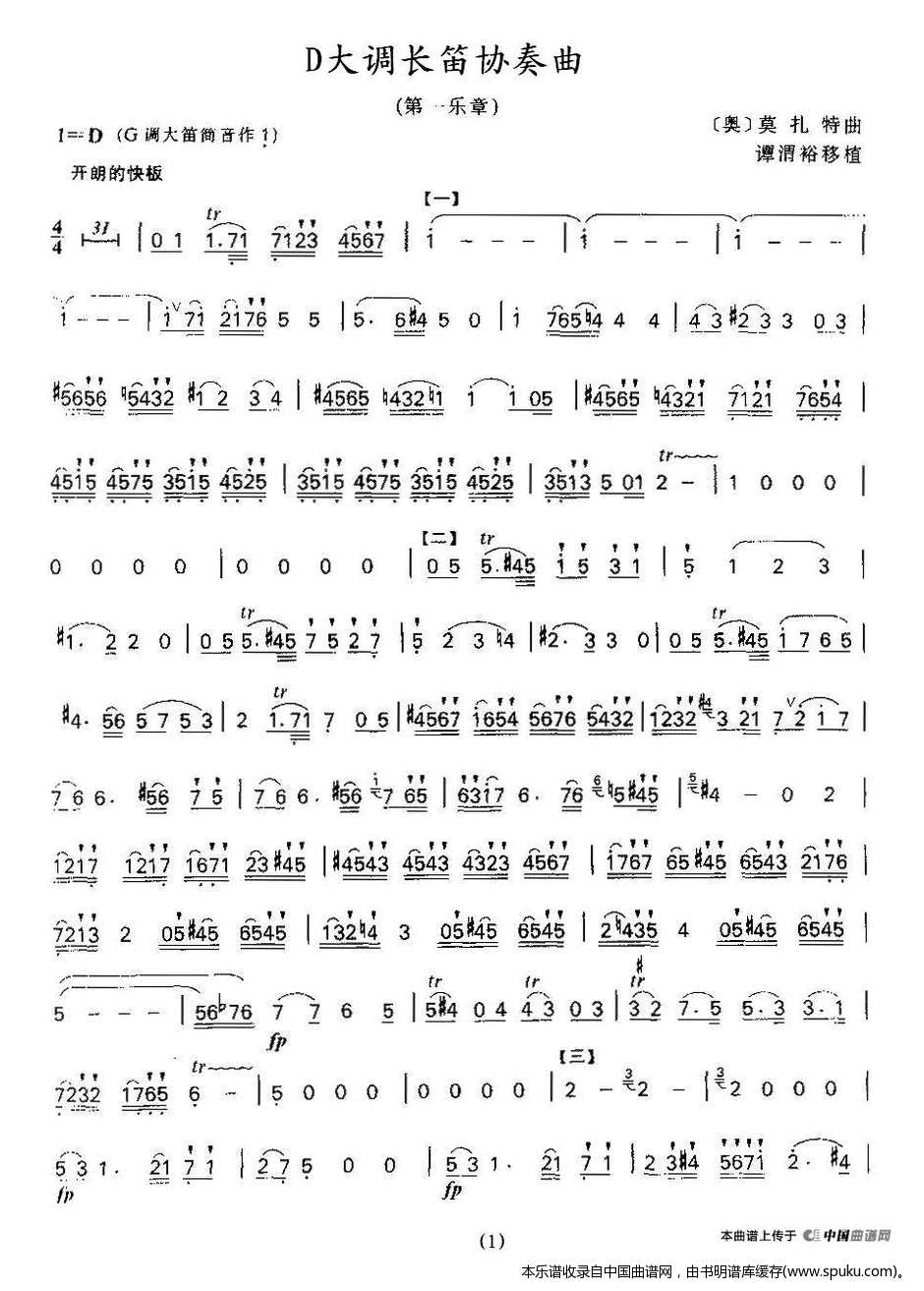 - [笛子谱,长笛谱] D大调长笛协奏曲 民乐类 竹笛