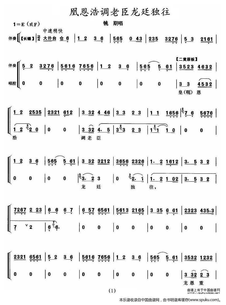 > 凰恩浩调老臣龙廷独往 铫期唱段 京剧戏谱