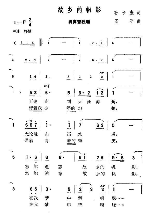 - [二胡谱,歌谱,胡琴谱] 故乡的云