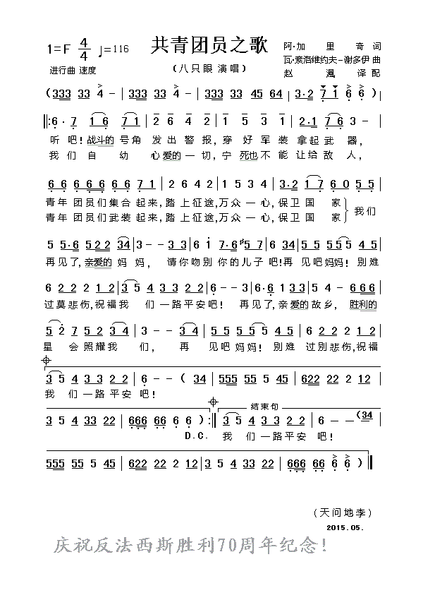 前苏联 共青团员之歌 男声小合唱 中俄文对照