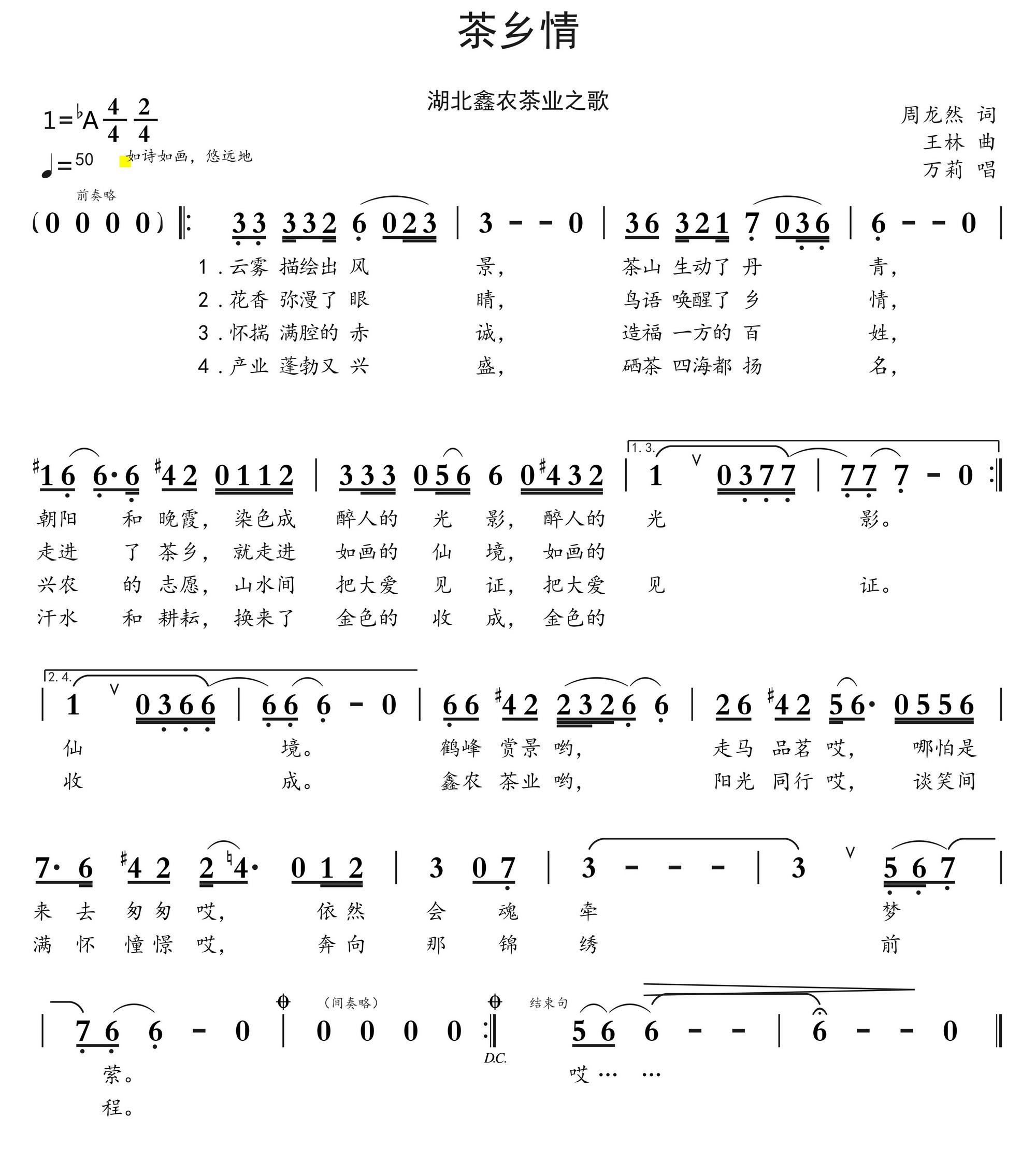 - [歌谱] 茶乡情 中国溧阳茶叶节主题歌