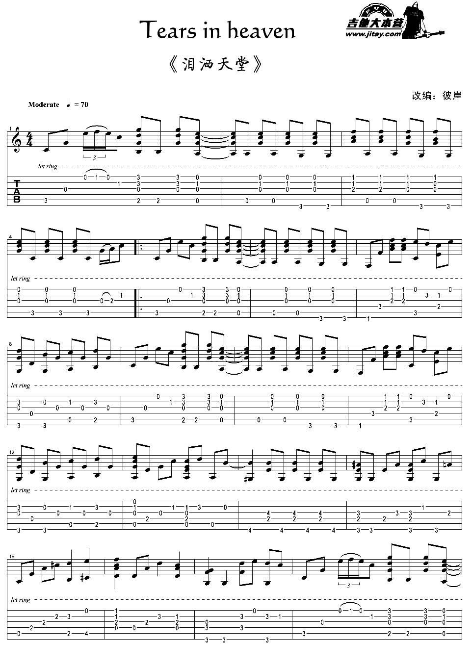 > Tears In Heaven 泪洒天堂 指弹独奏谱