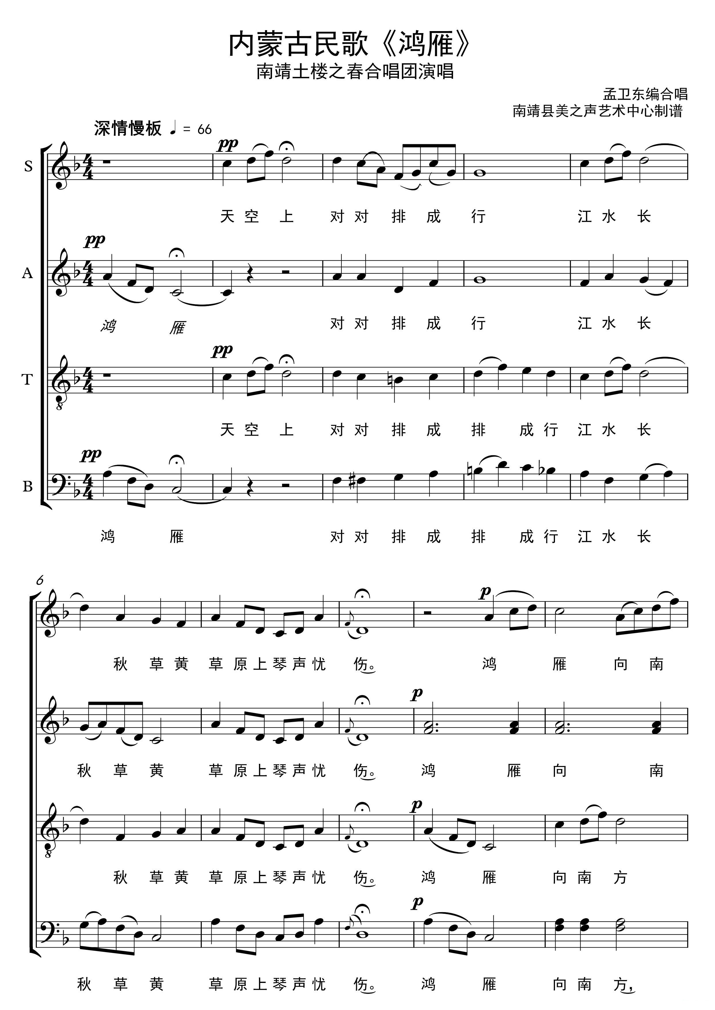 > 鸿雁 无伴奏合唱 南靖县美之声艺术中心制谱版