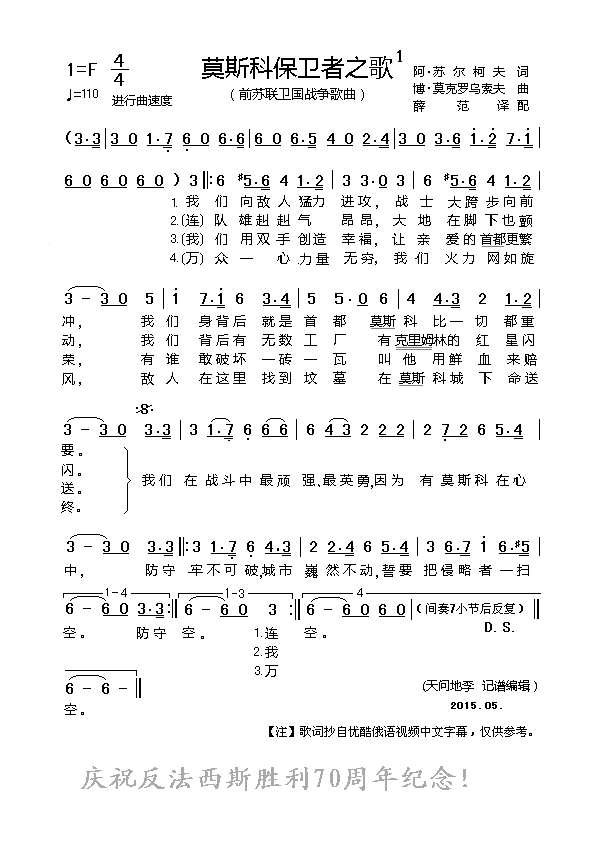 莫斯科保卫者之歌 二 纪录影片 全歼德寇于莫斯科城下 主题歌