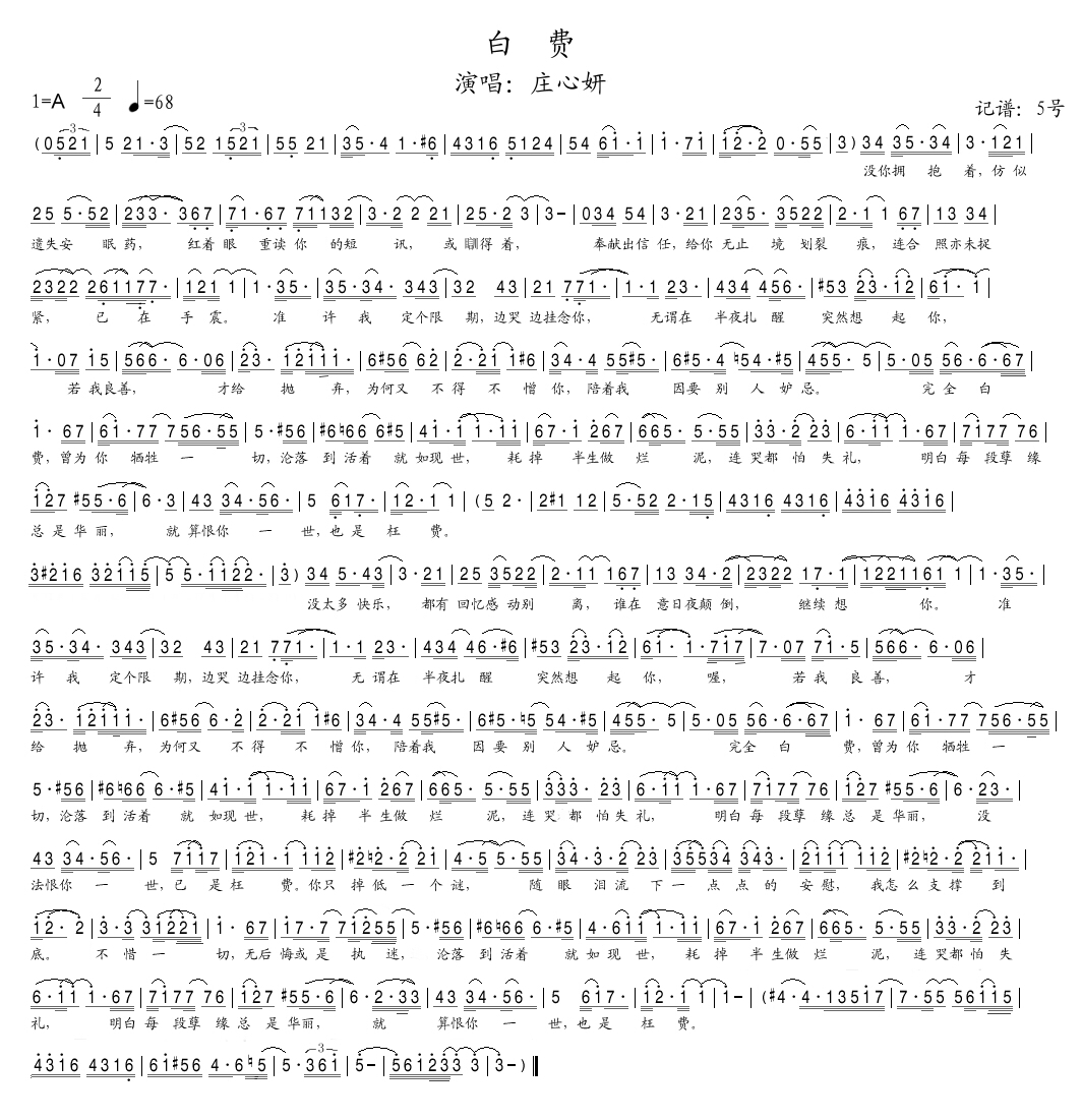 - [歌谱] 一万个舍不得 庄心妍 祁隆