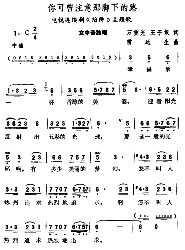 你可曾注意那脚下的路 电视剧 陷阱 主题歌