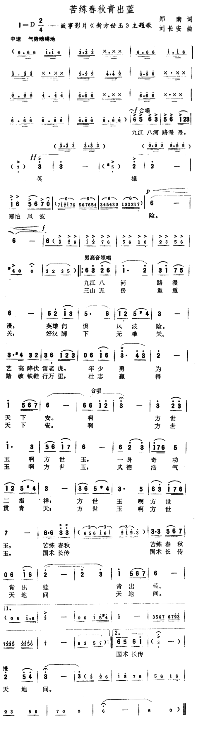 地雷战 故事片 地雷战 主题歌 合唱谱