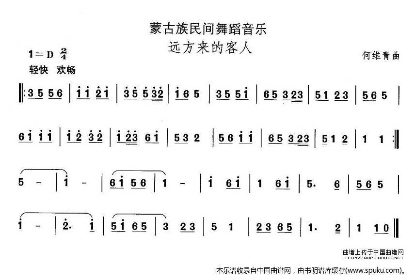 > 中国民族民间舞曲选 八 蒙古族舞蹈 远方来的客 乐器谱