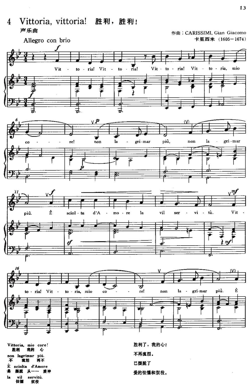- [歌谱] 意 胜利啊 胜利啊 中外文对照