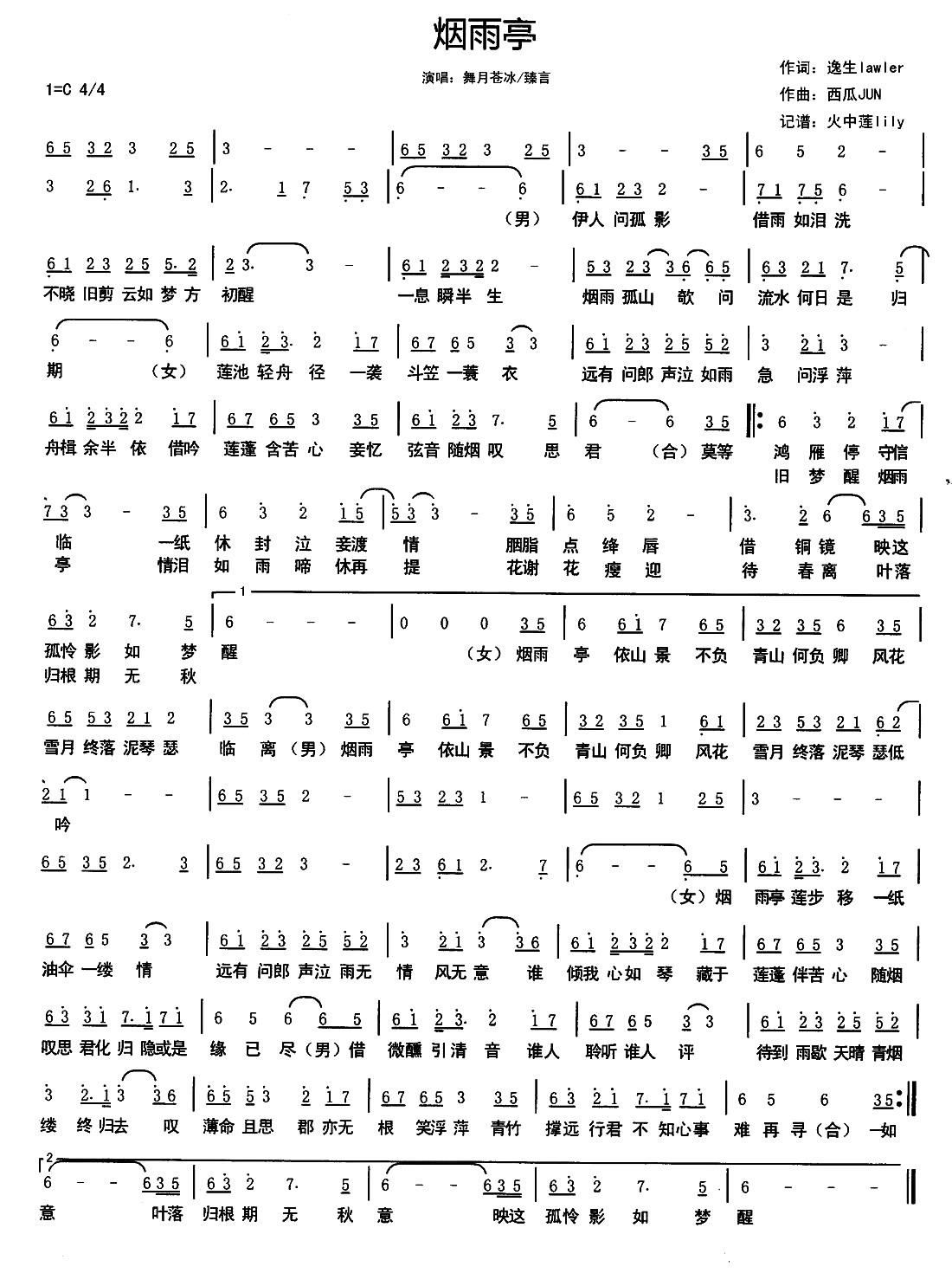 - [歌谱] 烟雨亭