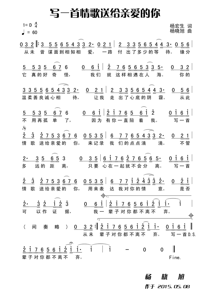 写一首情歌送给亲爱的你