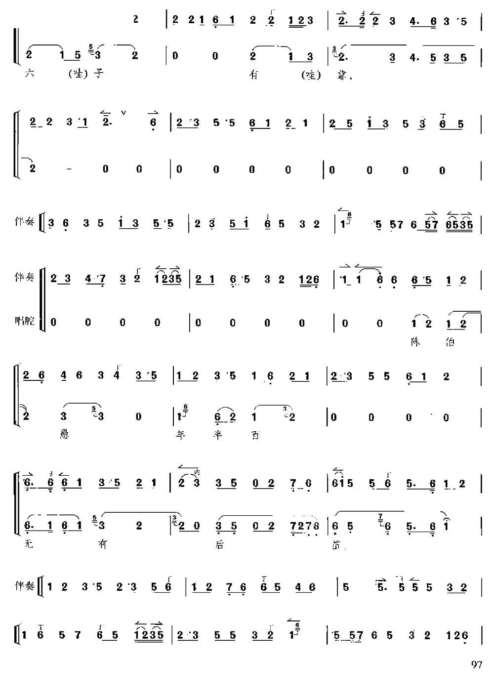 张公道三十五六子有靠 打侄上坟 陈伯愚唱段 唱谱