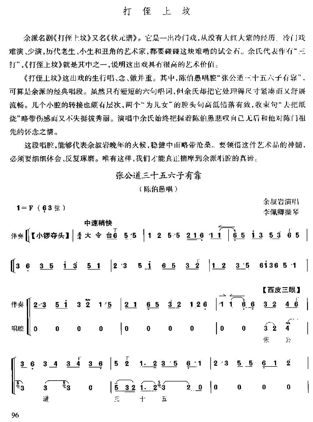 张公道三十五六子有靠 打侄上坟 陈伯愚唱段 京剧戏谱