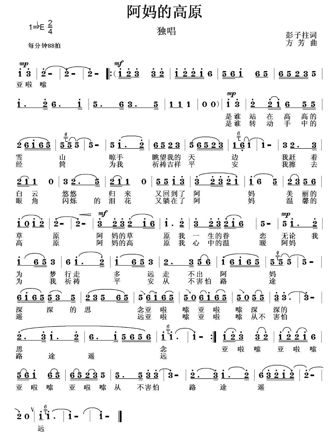 - [歌谱] 高原阿妈